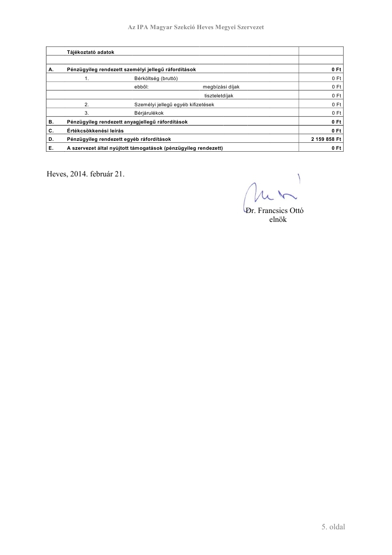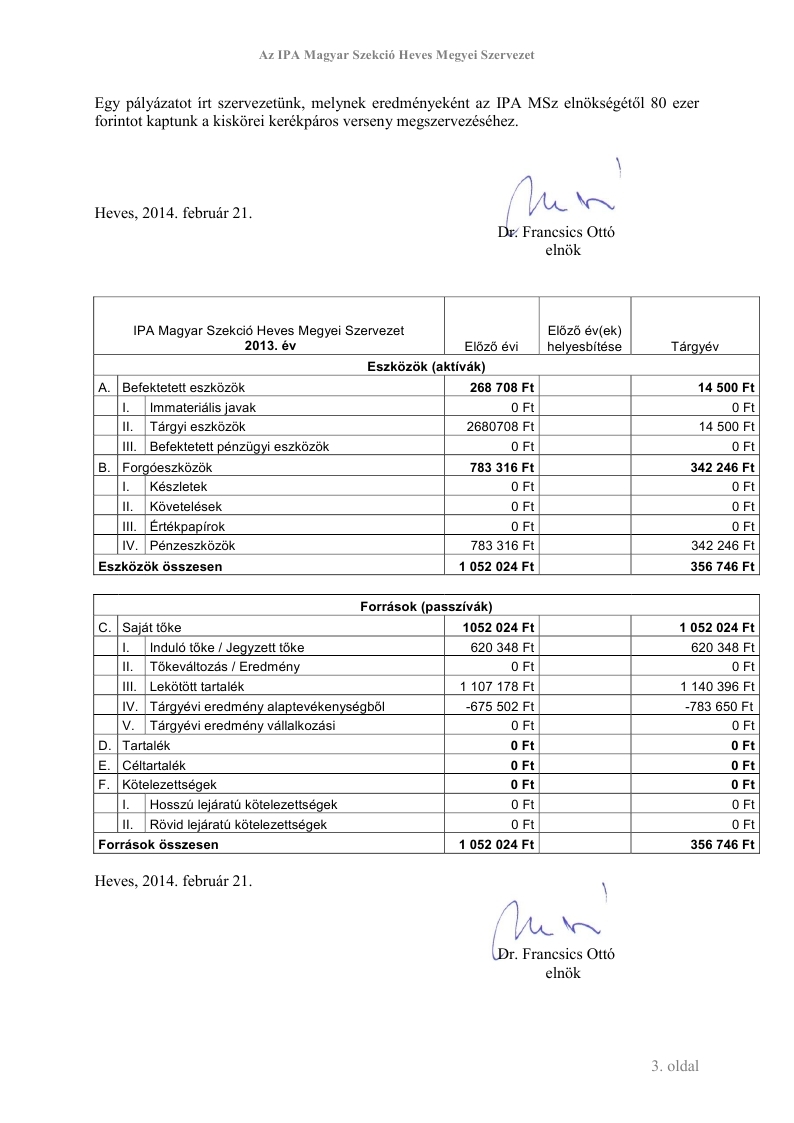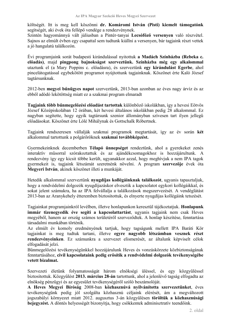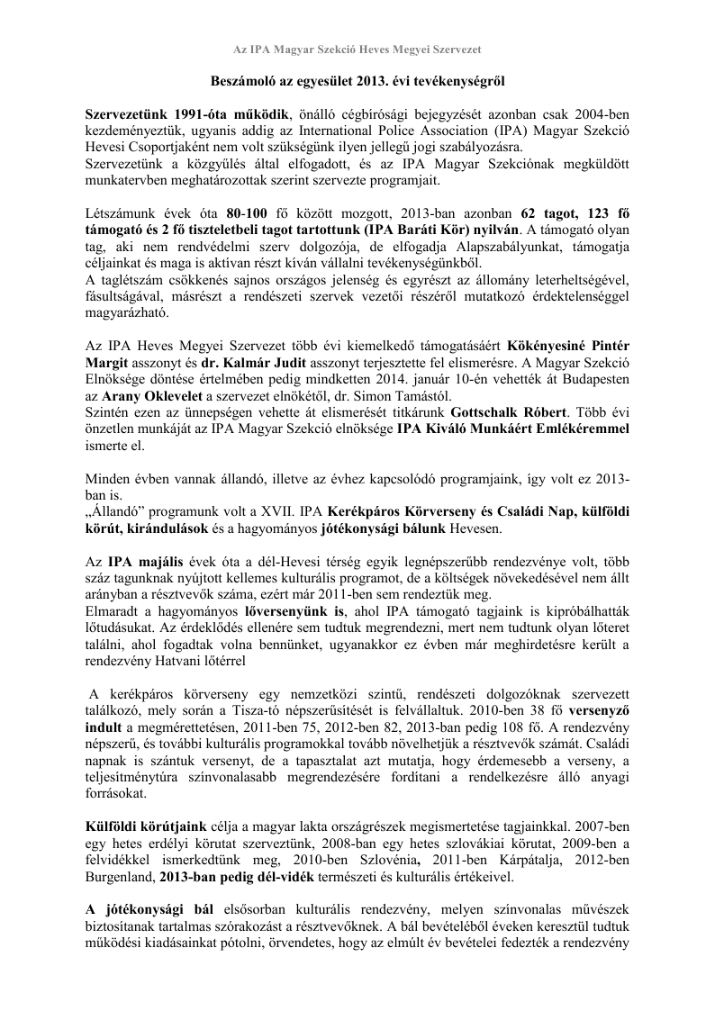 Éves közgyűlésünket 2014. március 27-én  megtartottuk és elfogadtuk az elnökség beszámolóját a végzett tevékenységről, a 2013-as év kiadásairól és bevételeiről. A résztvevők támogatták 2014-es terveinket, és ehhez a pénzügyi tervet is jóváhagyták.