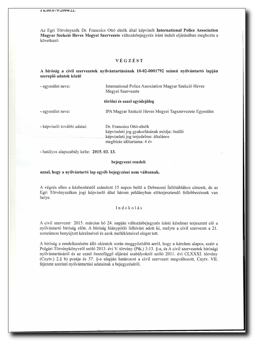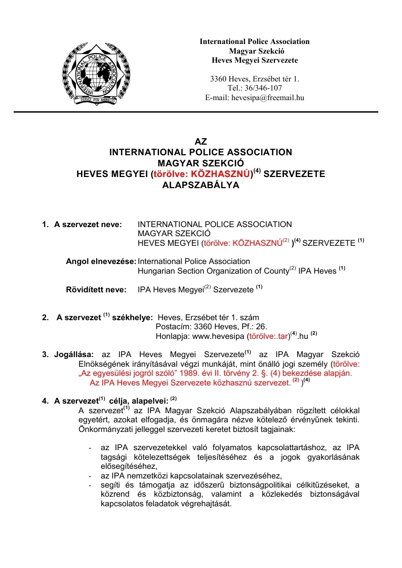 Az IPA Heves Megyei Szervezete közhasznú szervezet. (2) )(4)