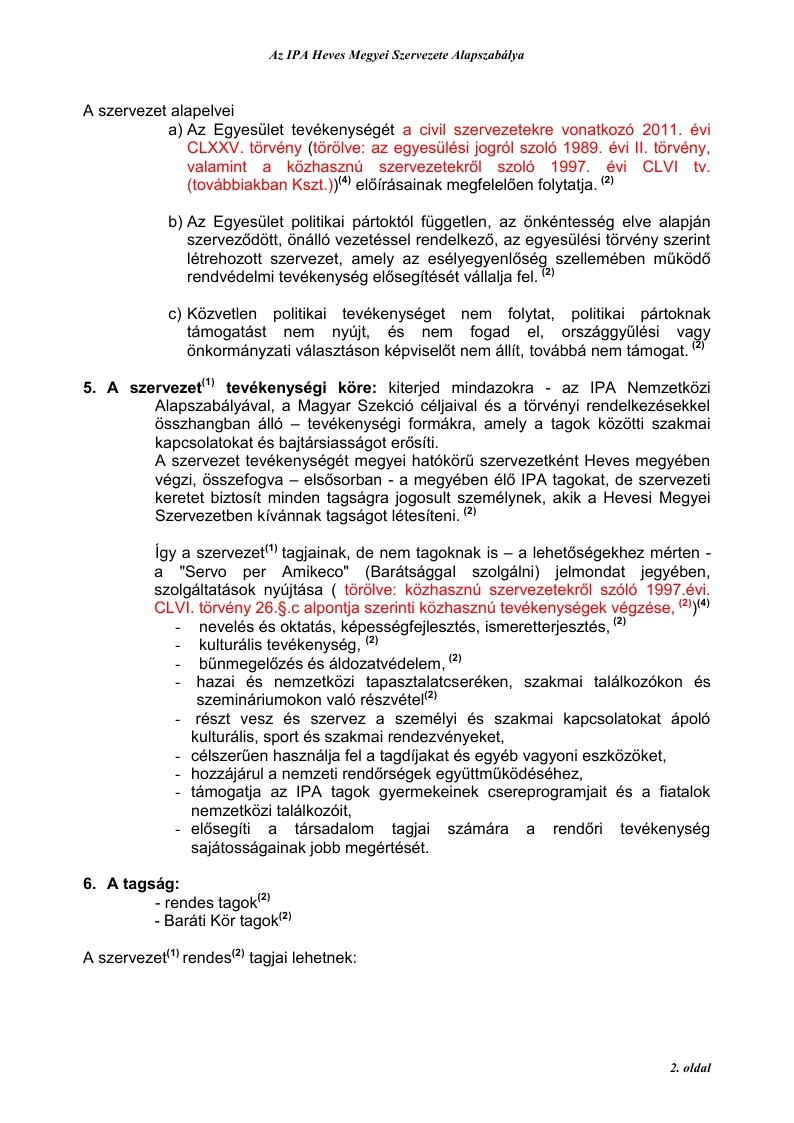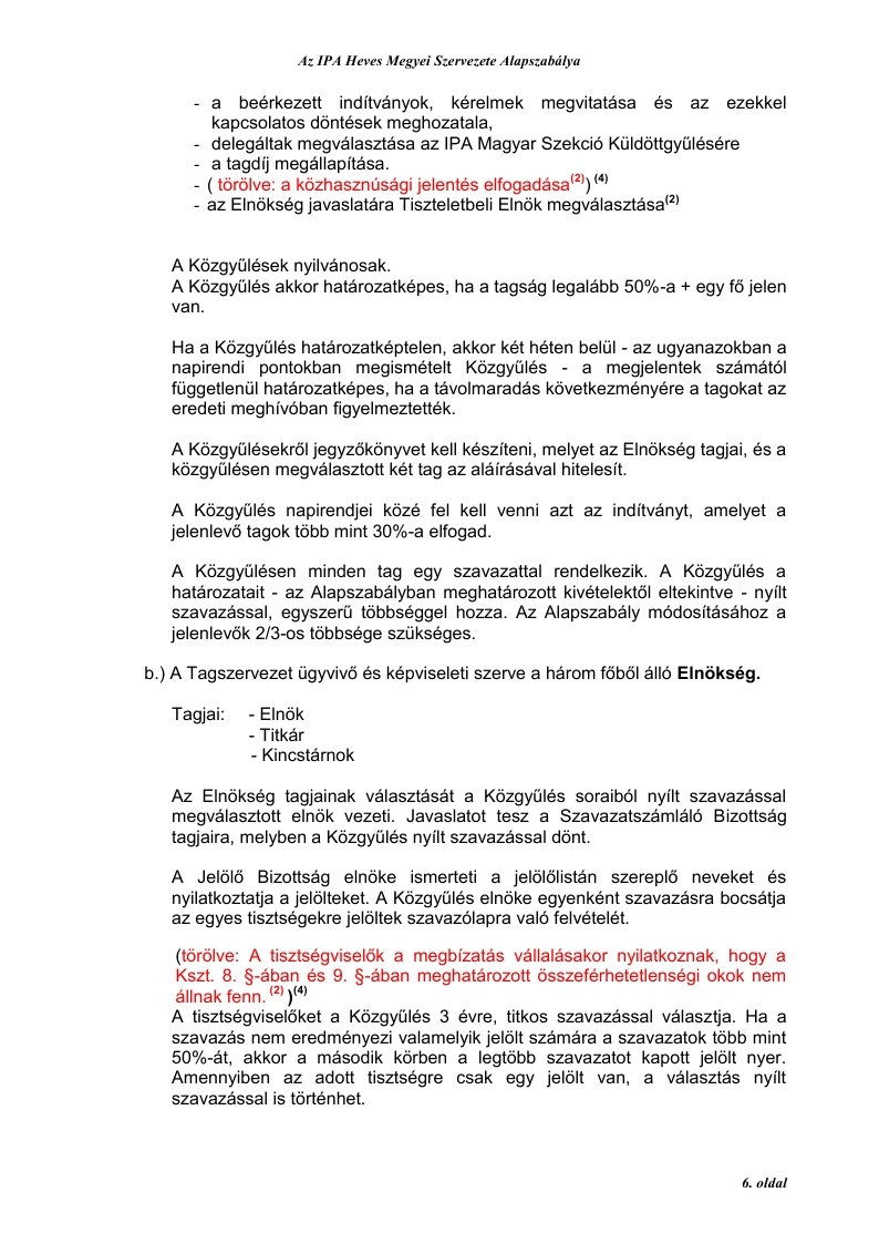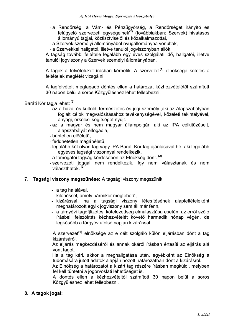 3. Jogállása: az IPA Heves Megyei Szervezete(1) az IPA Magyar Szekció Elnökségének irányításával végzi munkáját, mint önálló jogi személy (törölve: „Az egyesülési jogról szóló” 1989. évi II. törvény 2. §. (4) bekezdése alapján.